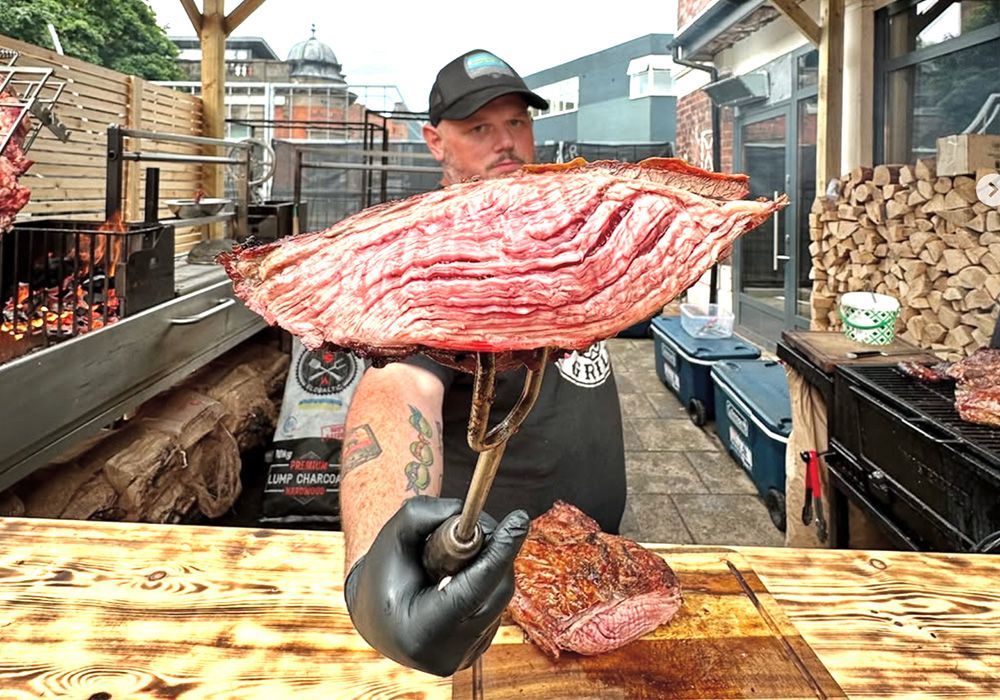 Throughout the day, Matías will cook and guide guests through a wide selection of traditional Argentine cuts, including vacío, bondiola (pork collar), matambrito, authentic Argentine sausages, provoleta cooked on the grill, chimichurri, salsa criolla, and more. Everything is cooked slowly over open fire using classic Argentine techniques, with plenty of food coming off the grill over several hours.