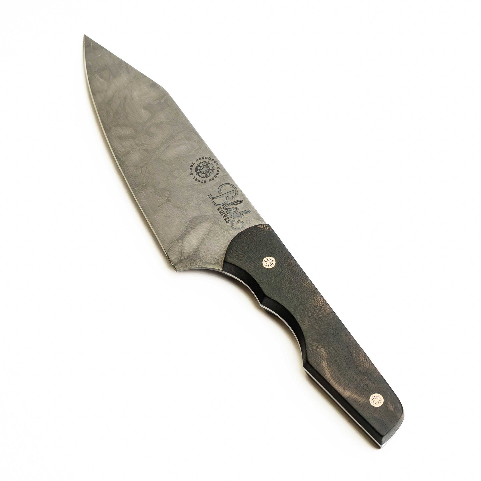 A claro walnut, carbon steel utility knife that will knock your socks off. Smooth and effortless.