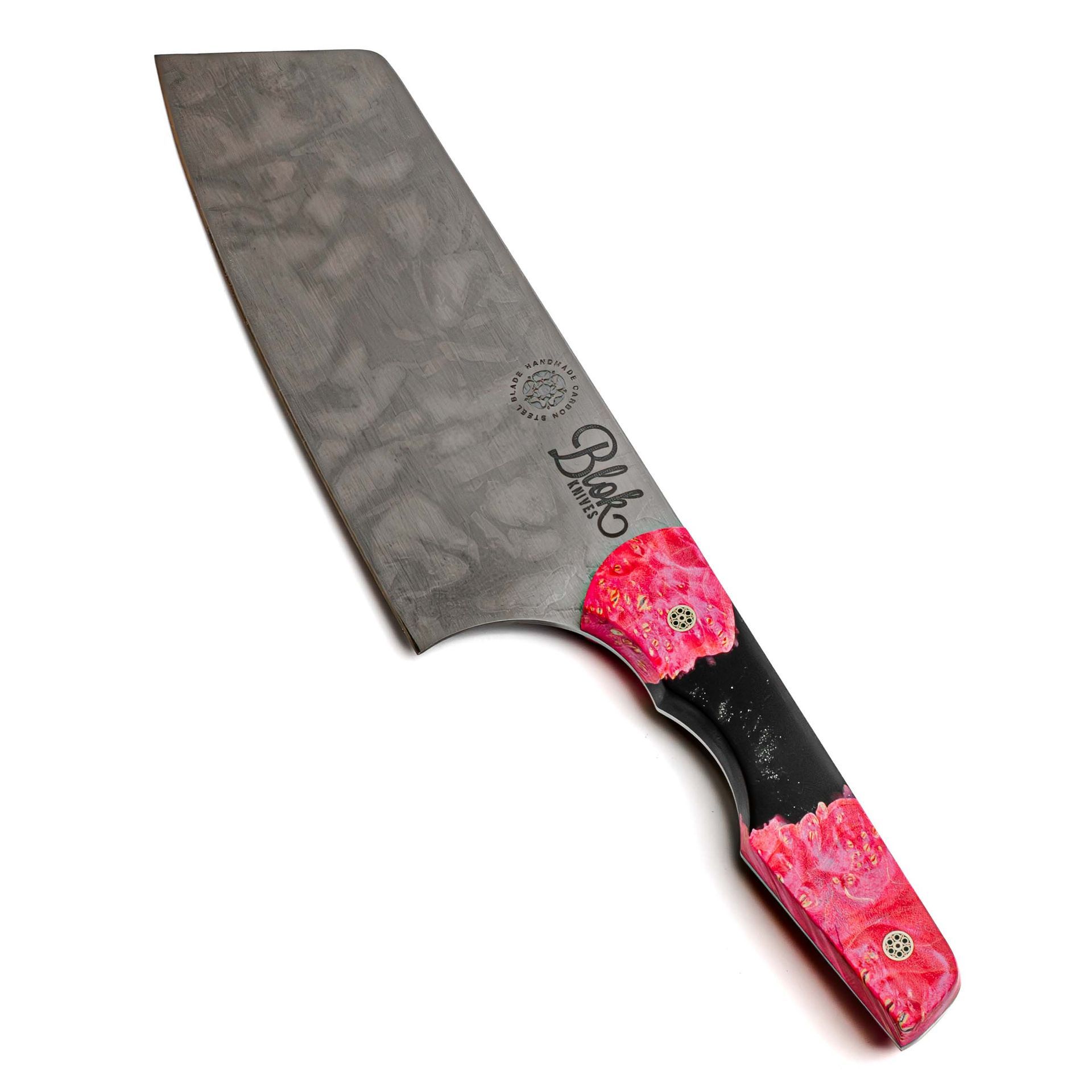A Pink & Black hybrid resin, carbon steel chef knife that will knock your socks off. This 7" veg slicer is perfect for a hard days graft on the chopping board.