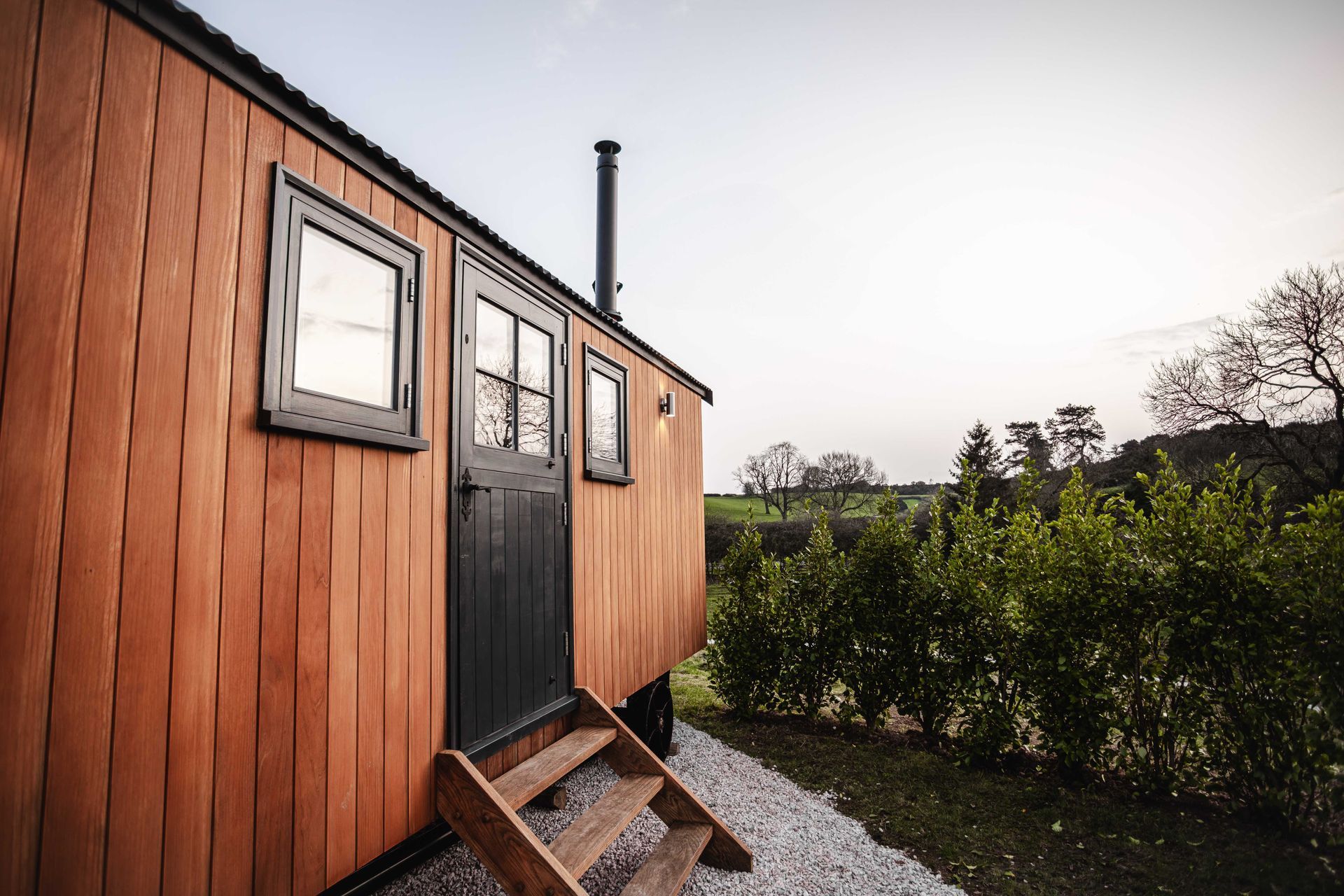 The standout is the wood-fired hot tub: light the fire, let it heat, and settle in under the open sky with a drink while the day winds down. It’s ideal for a romantic weekend, a reset after a long week, or a base for exploring the area—quiet, private, and all about doing things at an unhurried pace.